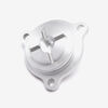 The oil filter cap on a motorcycle is a component that covers and seals the oil filter housing. It ensures that the oil filter is securely held in place and that the engine oil remains contained within the system. Made from metal or durable plastic, the oil filter cap is designed to maintain a tight seal and withstand engine temperatures and pressures, preventing leaks and ensuring proper filtration.