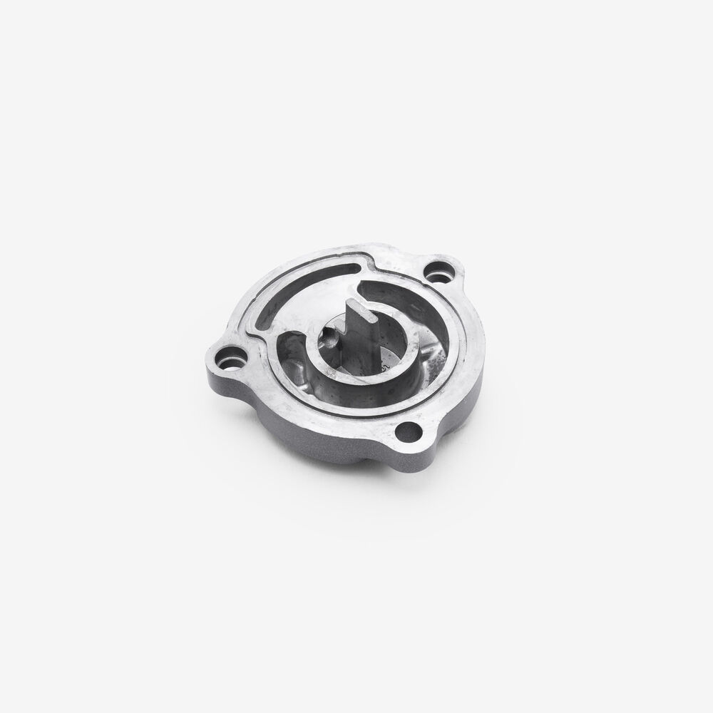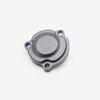 The oil filter cap on a motorcycle is a component that covers and seals the oil filter housing. It ensures that the oil filter is securely held in place and that the engine oil remains contained within the system. Made from metal or durable plastic, the oil filter cap is designed to maintain a tight seal and withstand engine temperatures and pressures, preventing leaks and ensuring proper filtration.
