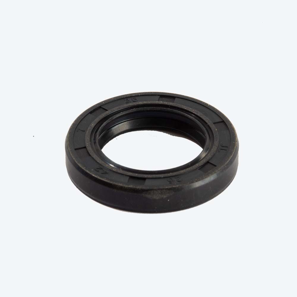 An oil seal on a motorcycle is a sealing component designed to prevent oil leaks and keep lubrication fluids contained within engine or transmission parts. It provides a tight seal between moving and stationary parts, such as shafts and housings, to protect against oil leakage and contamination. Made from durable materials like rubber or synthetic compounds, the oil seal ensures proper function and longevity of the engine or transmission by maintaining effective lubrication and preventing dirt and moisture from entering the system.