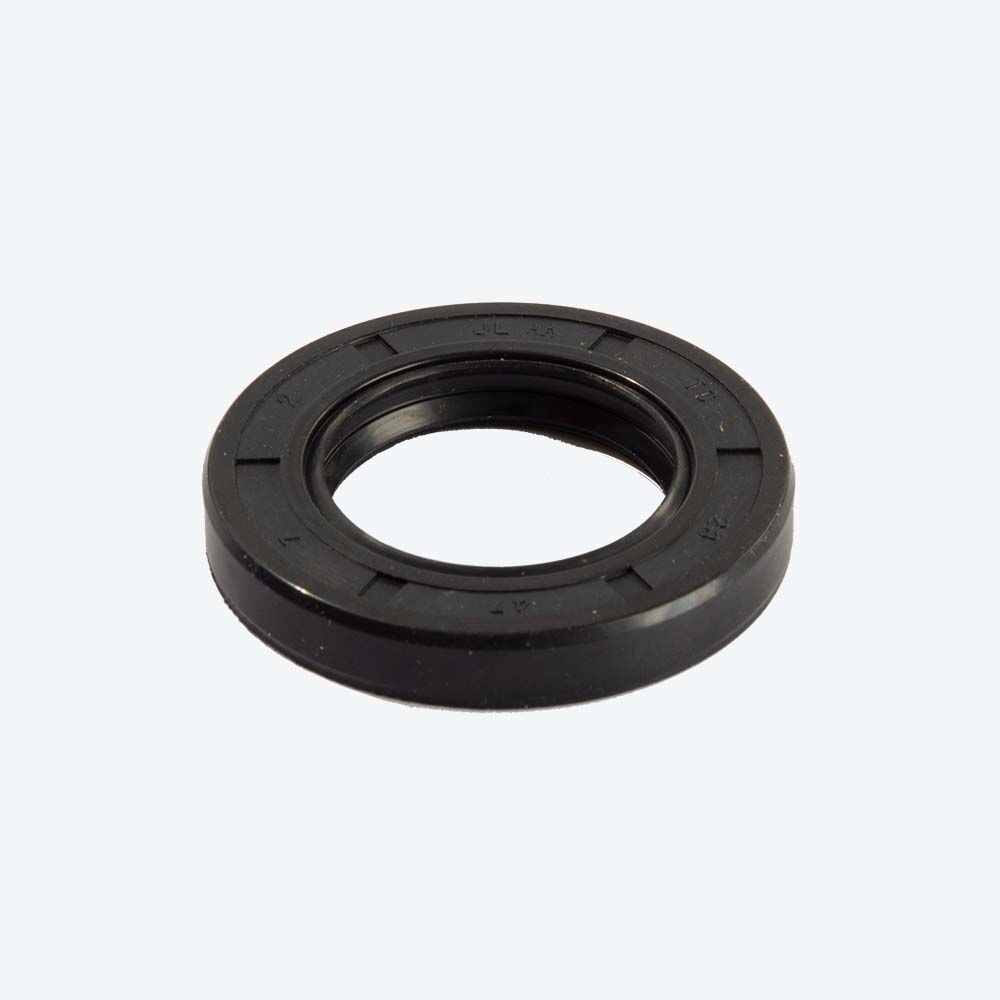 An oil seal on a motorcycle is a sealing component designed to prevent oil leaks and keep lubrication fluids contained within engine or transmission parts. It provides a tight seal between moving and stationary parts, such as shafts and housings, to protect against oil leakage and contamination. Made from durable materials like rubber or synthetic compounds, the oil seal ensures proper function and longevity of the engine or transmission by maintaining effective lubrication and preventing dirt and moisture from entering the system.