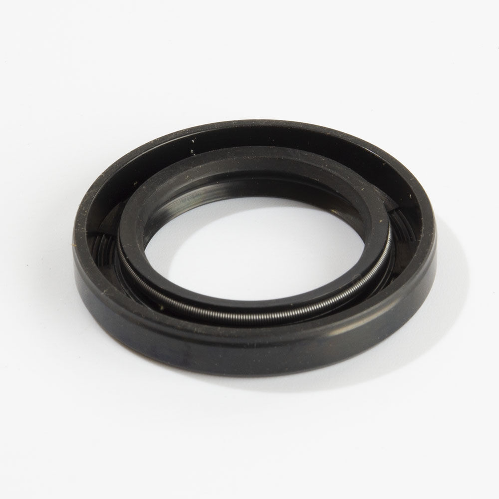 An oil seal on a motorcycle is a sealing component designed to prevent oil leaks and keep lubrication fluids contained within engine or transmission parts. It provides a tight seal between moving and stationary parts, such as shafts and housings, to protect against oil leakage and contamination. Made from durable materials like rubber or synthetic compounds, the oil seal ensures proper function and longevity of the engine or transmission by maintaining effective lubrication and preventing dirt and moisture from entering the system.