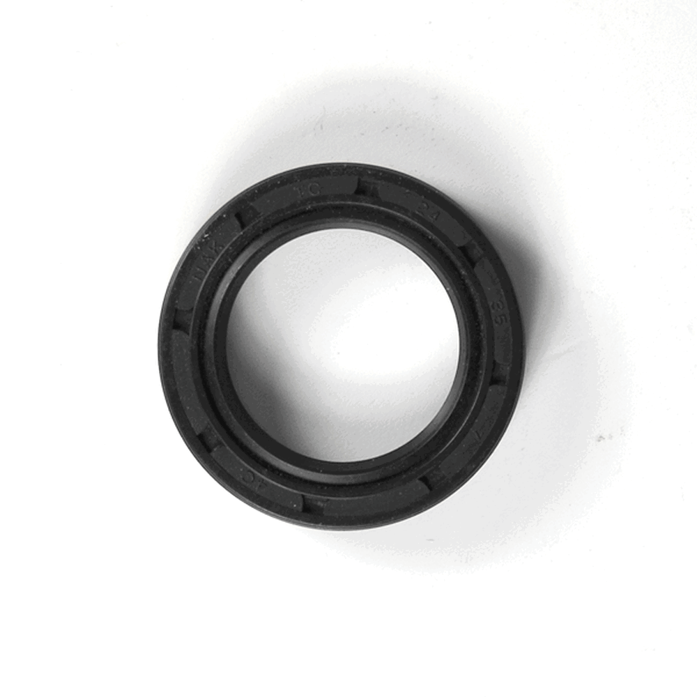 An oil seal on a motorcycle is a sealing component designed to prevent oil leaks and keep lubrication fluids contained within engine or transmission parts. It provides a tight seal between moving and stationary parts, such as shafts and housings, to protect against oil leakage and contamination. Made from durable materials like rubber or synthetic compounds, the oil seal ensures proper function and longevity of the engine or transmission by maintaining effective lubrication and preventing dirt and moisture from entering the system.