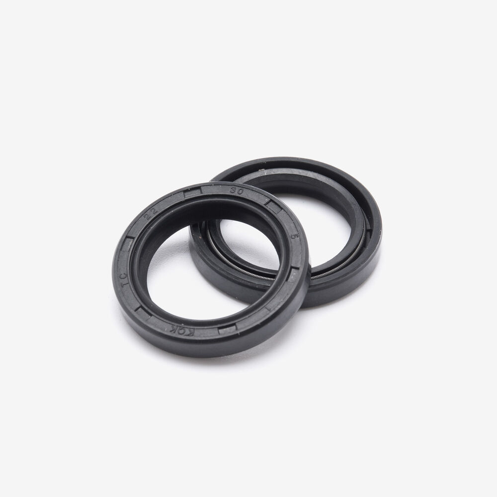 An oil seal on a motorcycle is a sealing component designed to prevent oil leaks and keep lubrication fluids contained within engine or transmission parts. It provides a tight seal between moving and stationary parts, such as shafts and housings, to protect against oil leakage and contamination. Made from durable materials like rubber or synthetic compounds, the oil seal ensures proper function and longevity of the engine or transmission by maintaining effective lubrication and preventing dirt and moisture from entering the system.