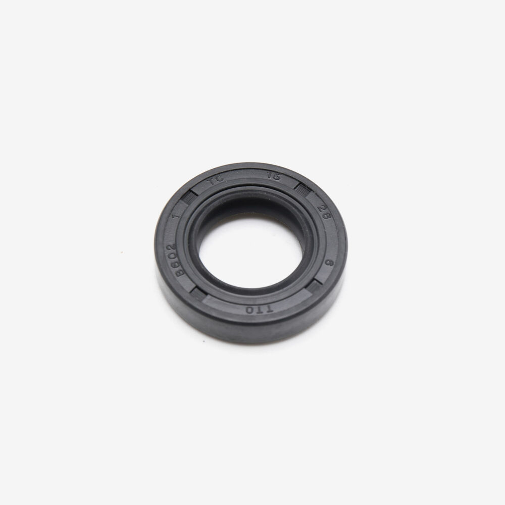 An oil seal on a motorcycle is a sealing component designed to prevent oil leaks and keep lubrication fluids contained within engine or transmission parts. It provides a tight seal between moving and stationary parts, such as shafts and housings, to protect against oil leakage and contamination. Made from durable materials like rubber or synthetic compounds, the oil seal ensures proper function and longevity of the engine or transmission by maintaining effective lubrication and preventing dirt and moisture from entering the system.