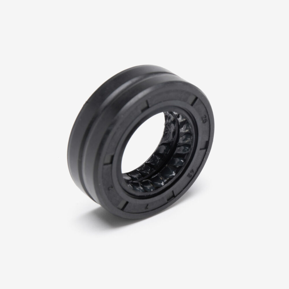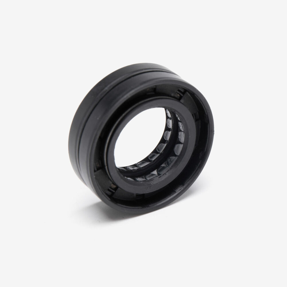An oil seal on a motorcycle is a sealing component designed to prevent oil leaks and keep lubrication fluids contained within engine or transmission parts. It provides a tight seal between moving and stationary parts, such as shafts and housings, to protect against oil leakage and contamination. Made from durable materials like rubber or synthetic compounds, the oil seal ensures proper function and longevity of the engine or transmission by maintaining effective lubrication and preventing dirt and moisture from entering the system.
