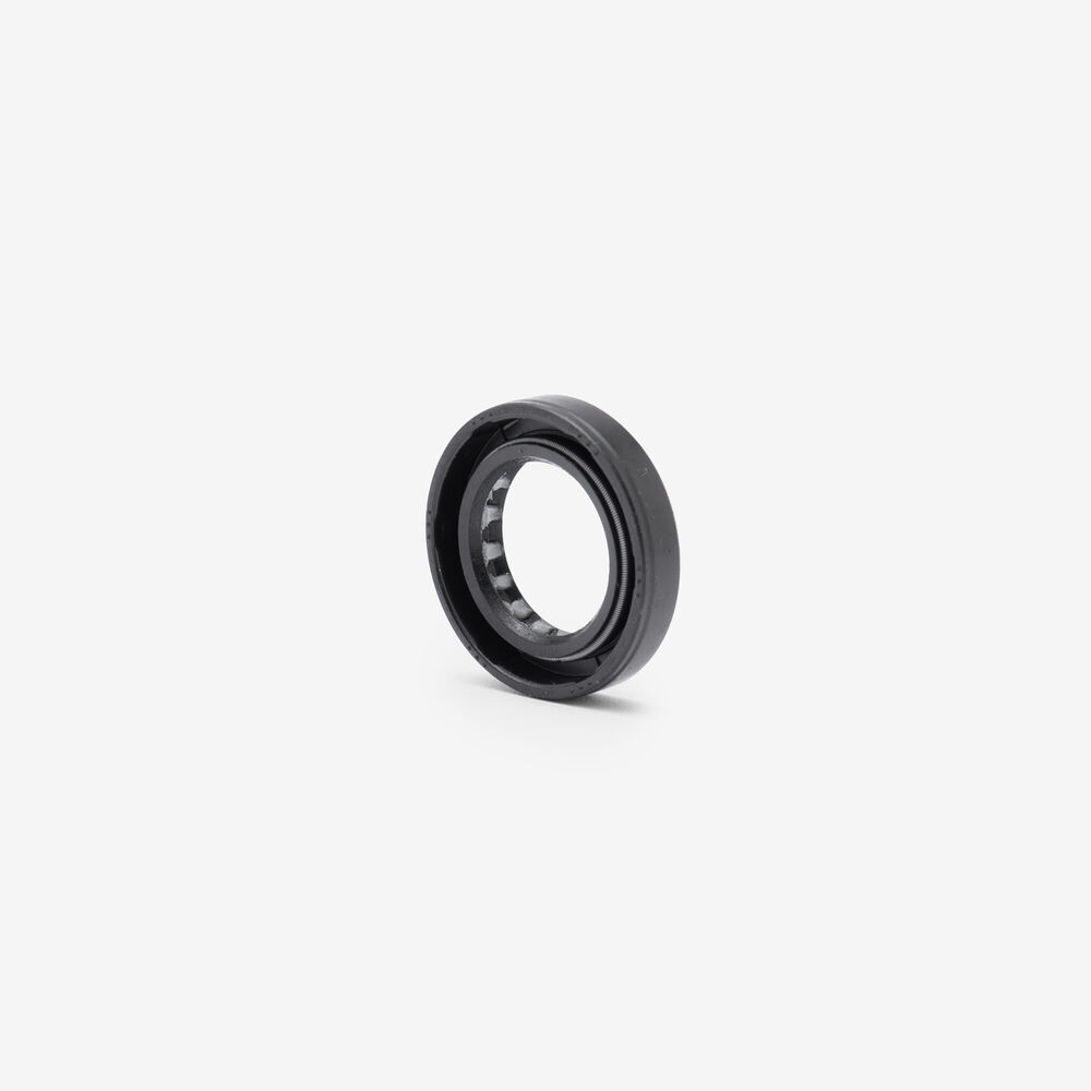 An oil seal on a motorcycle is a sealing component designed to prevent oil leaks and keep lubrication fluids contained within engine or transmission parts. It provides a tight seal between moving and stationary parts, such as shafts and housings, to protect against oil leakage and contamination. Made from durable materials like rubber or synthetic compounds, the oil seal ensures proper function and longevity of the engine or transmission by maintaining effective lubrication and preventing dirt and moisture from entering the system.