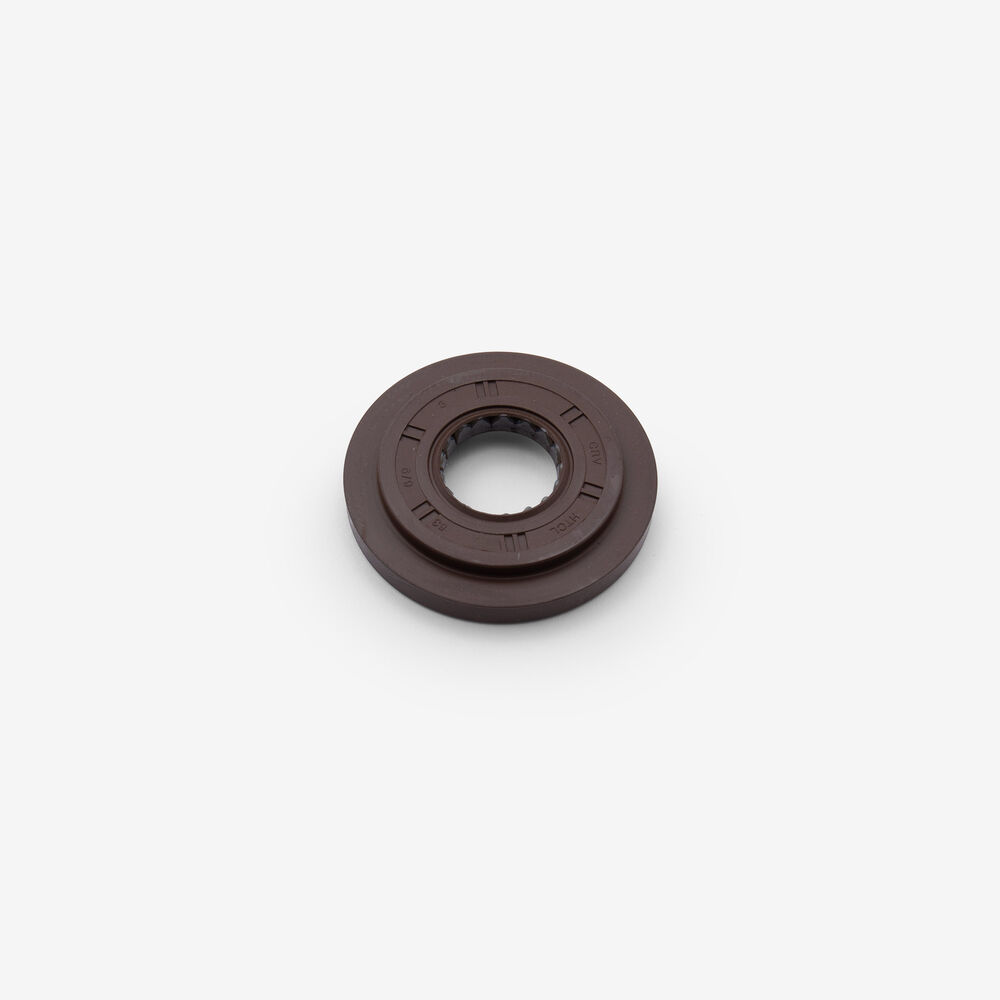 An oil seal on a motorcycle is a sealing component designed to prevent oil leaks and keep lubrication fluids contained within engine or transmission parts. It provides a tight seal between moving and stationary parts, such as shafts and housings, to protect against oil leakage and contamination. Made from durable materials like rubber or synthetic compounds, the oil seal ensures proper function and longevity of the engine or transmission by maintaining effective lubrication and preventing dirt and moisture from entering the system.