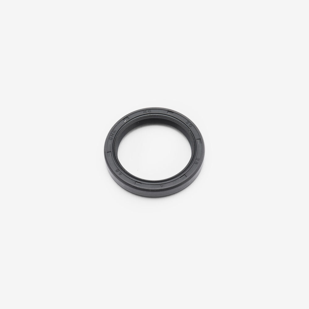 An oil seal on a motorcycle is a sealing component designed to prevent oil leaks and keep lubrication fluids contained within engine or transmission parts. It provides a tight seal between moving and stationary parts, such as shafts and housings, to protect against oil leakage and contamination. Made from durable materials like rubber or synthetic compounds, the oil seal ensures proper function and longevity of the engine or transmission by maintaining effective lubrication and preventing dirt and moisture from entering the system.