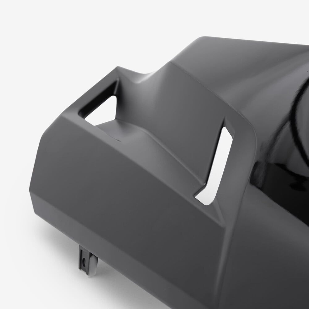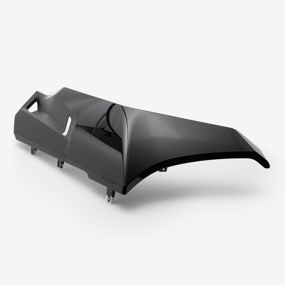 The belly panel on a motorcycle is a protective and decorative component located beneath the engine. It shields the lower part of the engine and the undercarriage from road debris, dirt, and weather, while also helping to streamline airflow for improved aerodynamics.