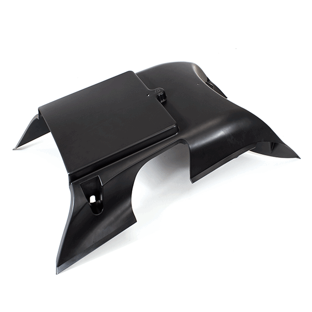The belly panel on a motorcycle is a protective and decorative component located beneath the engine. It shields the lower part of the engine and the undercarriage from road debris, dirt, and weather, while also helping to streamline airflow for improved aerodynamics.