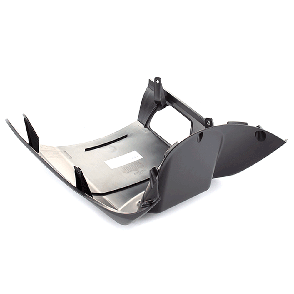 The belly panel on a motorcycle is a protective and decorative component located beneath the engine. It shields the lower part of the engine and the undercarriage from road debris, dirt, and weather, while also helping to streamline airflow for improved aerodynamics.