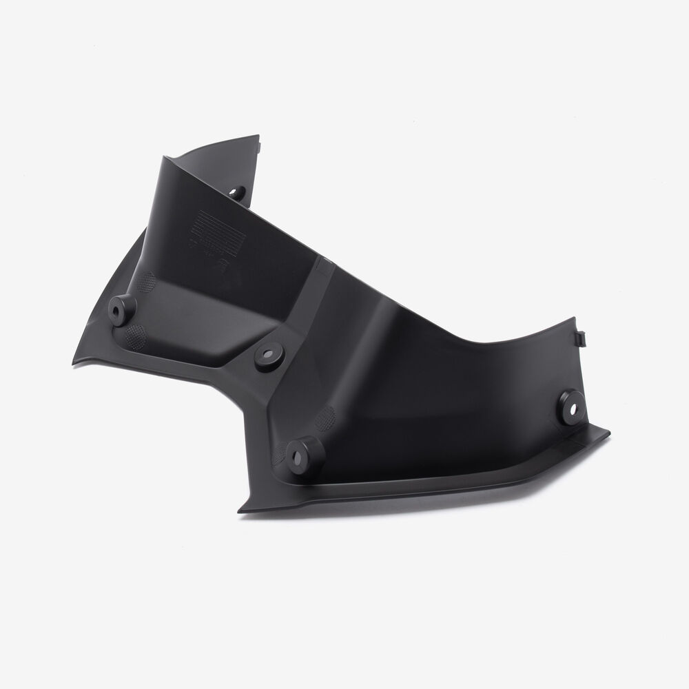 The decorative cover on a motorcycle is a component designed to enhance the bike's aesthetic appeal by covering and finishing various parts, such as engine components or body panels. It adds a customized and polished look while potentially providing some protection to the underlying parts.