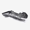 The decorative cover on a motorcycle is a component designed to enhance the bike's aesthetic appeal by covering and finishing various parts, such as engine components or body panels. It adds a customized and polished look while potentially providing some protection to the underlying parts.