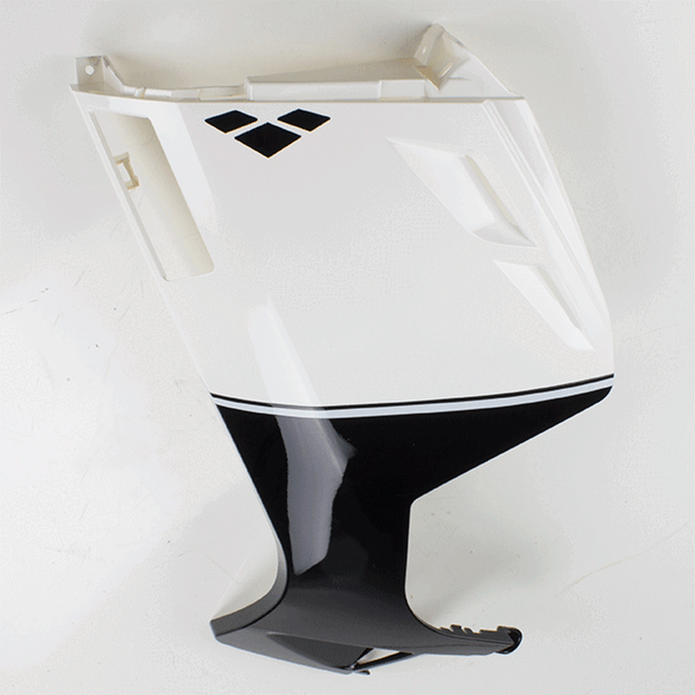 The front panel on a motorcycle is a key component located at the front of the bike, often integrating with the headlight and fairing. It serves to improve aerodynamics, protect the motorcycle’s internal components from debris and weather, and contribute to the bike’s visual appeal with a polished, cohesive look.