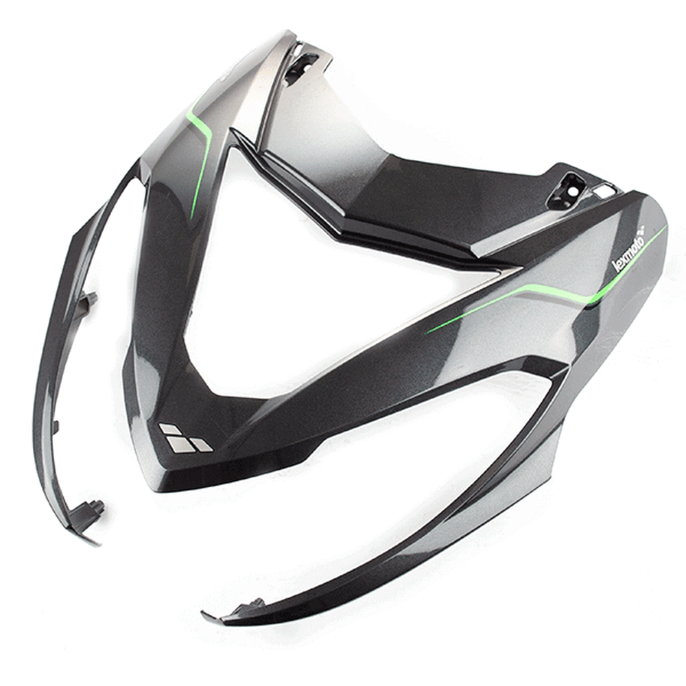 The front panel on a motorcycle is a key component located at the front of the bike, often integrating with the headlight and fairing. It serves to improve aerodynamics, protect the motorcycle’s internal components from debris and weather, and contribute to the bike’s visual appeal with a polished, cohesive look.