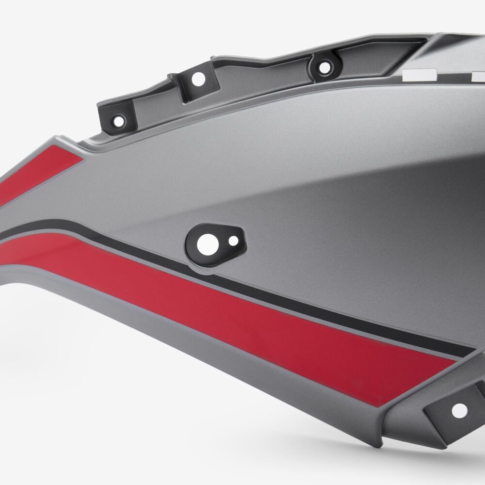 The front panel on a motorcycle is a key component located at the front of the bike, often integrating with the headlight and fairing. It serves to improve aerodynamics, protect the motorcycle’s internal components from debris and weather, and contribute to the bike’s visual appeal with a polished, cohesive look.