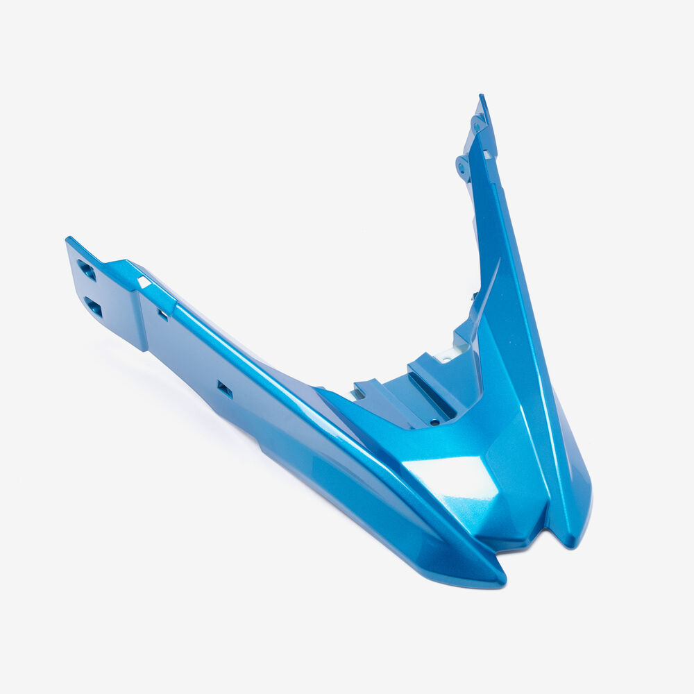 The front panel on a motorcycle is a key component located at the front of the bike, often integrating with the headlight and fairing. It serves to improve aerodynamics, protect the motorcycle’s internal components from debris and weather, and contribute to the bike’s visual appeal with a polished, cohesive look.