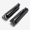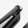 The fork protector on a motorcycle is a component designed to shield the front fork tubes from debris, impacts, and abrasions. It helps prevent damage and wear to the fork seals and tubes, ensuring smooth suspension operation and longevity.
