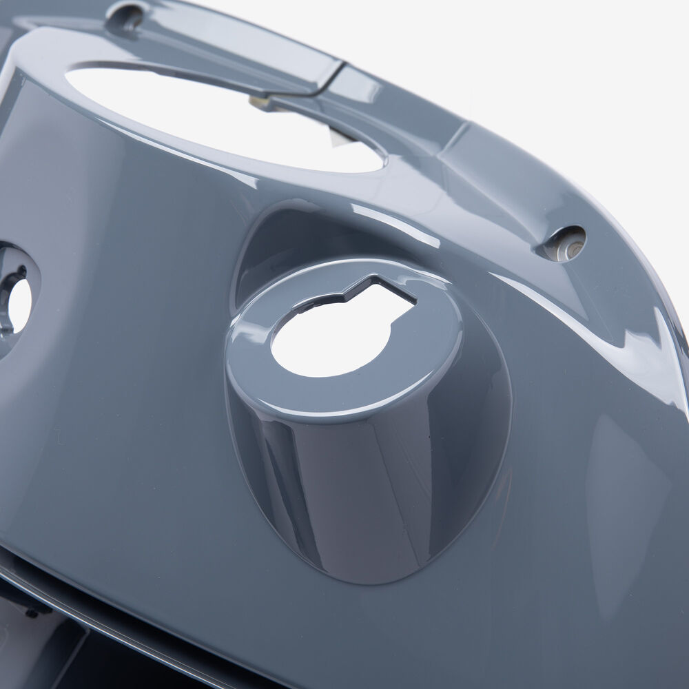 The footwell panel on a motorcycle is a component that covers and protects the footwell area where the rider's feet rest.