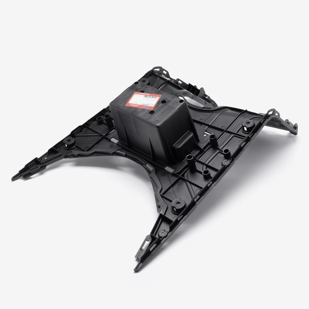 The footwell panel on a motorcycle is a component that covers and protects the footwell area where the rider's feet rest.