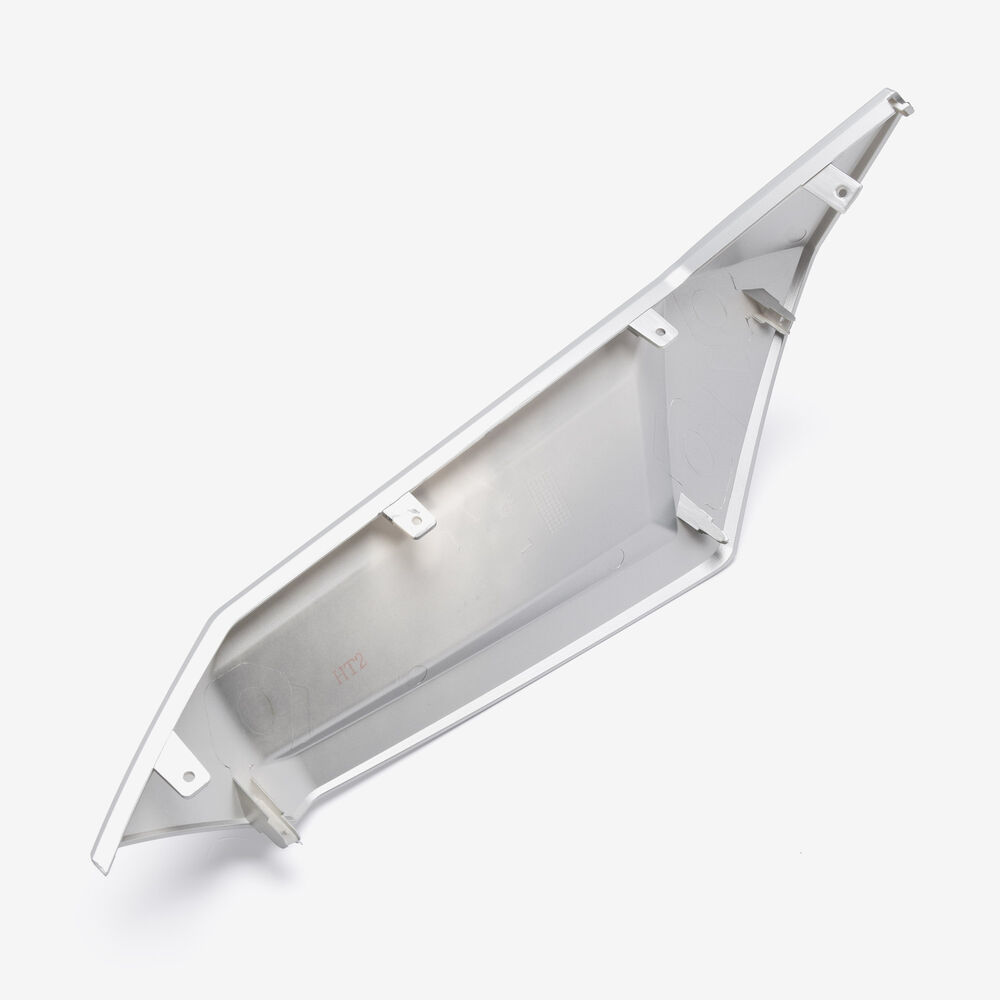 The footwell panel on a motorcycle is a component that covers and protects the footwell area where the rider's feet rest.