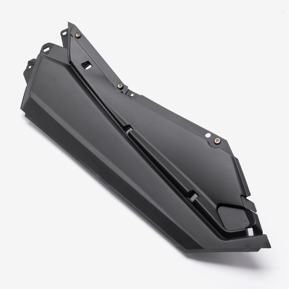 The footwell panel on a motorcycle is a component that covers and protects the footwell area where the rider's feet rest.