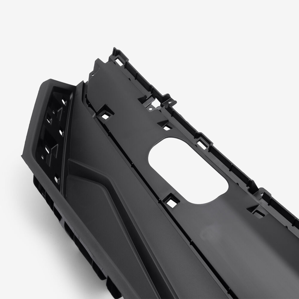 The footwell panel on a motorcycle is a component that covers and protects the footwell area where the rider's feet rest.