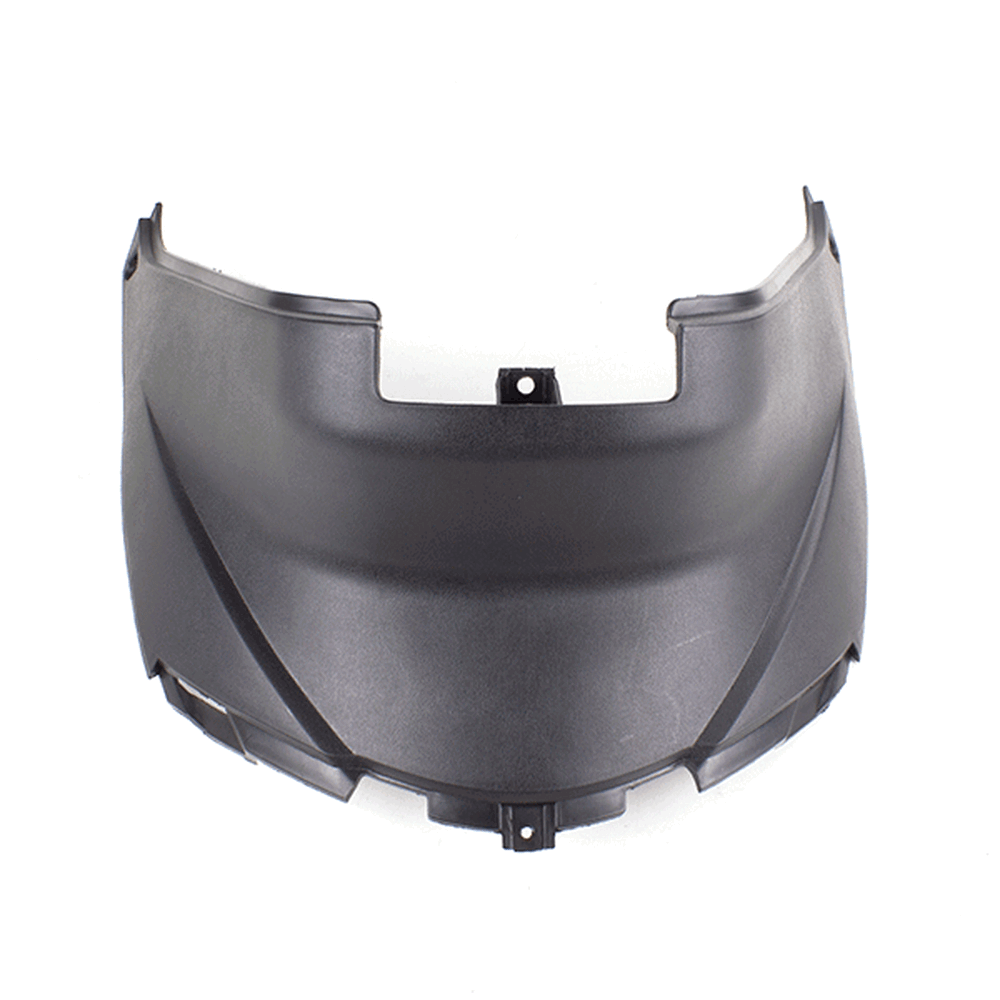 The footwell panel facing the heels on a motorcycle is a component located at the rear section of the footwell area.
