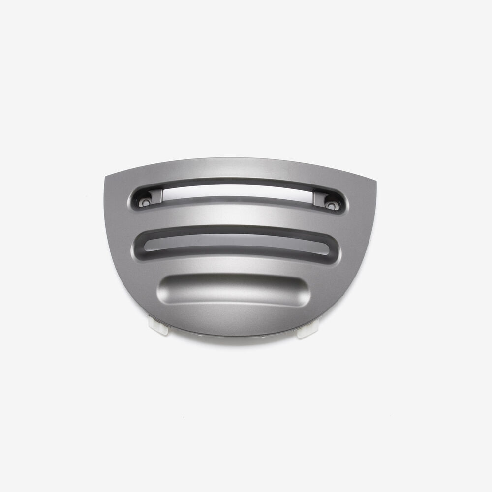 The footwell panel facing the heels on a motorcycle is a component located at the rear section of the footwell area.
