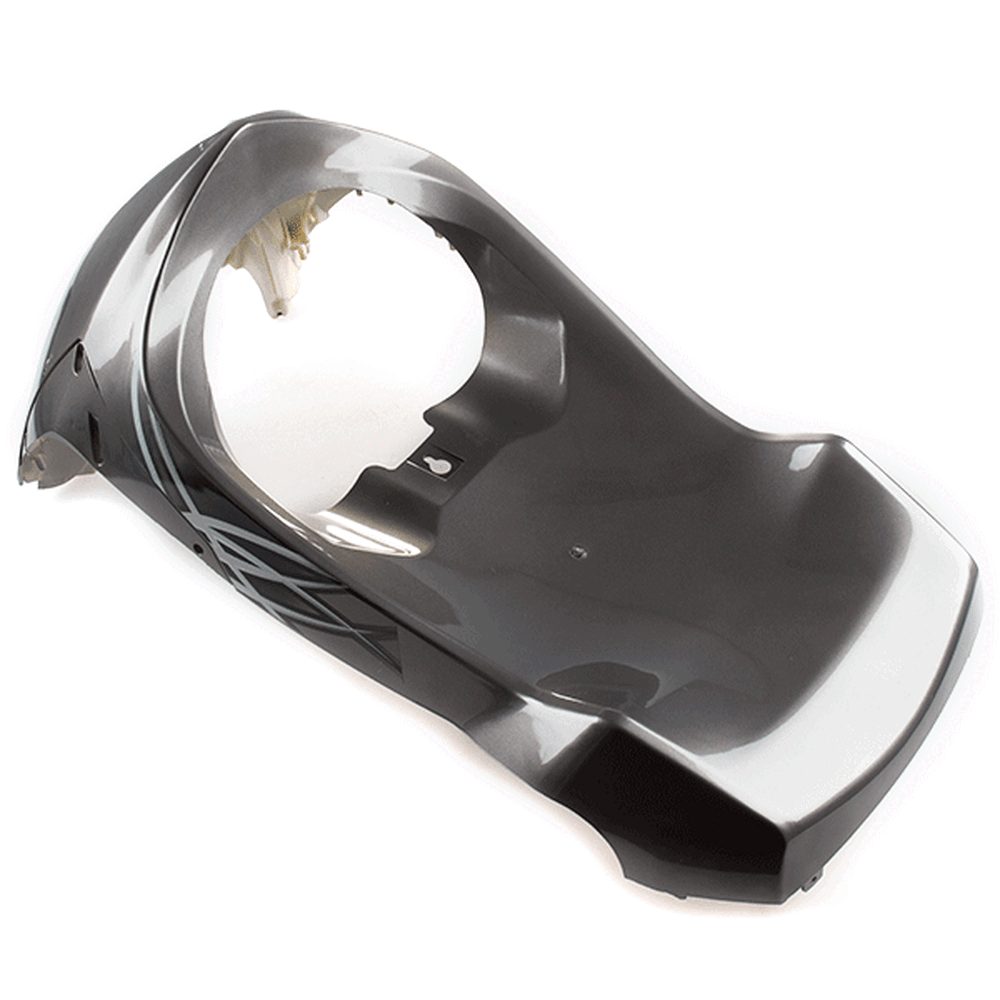 The footwell panel facing the knees on a motorcycle is a component designed to cover and protect the area around the rider's knees. Positioned in the lower part of the bike, it shields the rider's legs from debris, wind, and water, enhancing comfort during rides.