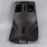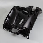 The footwell panel facing the knees on a motorcycle is a component designed to cover and protect the area around the rider's knees. Positioned in the lower part of the bike, it shields the rider's legs from debris, wind, and water, enhancing comfort during rides.