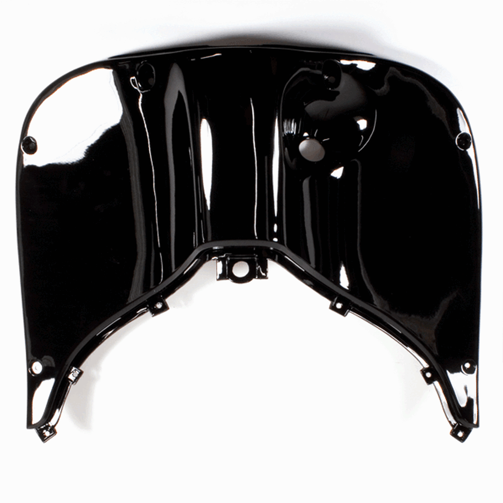 The footwell panel facing the knees on a motorcycle is a component designed to cover and protect the area around the rider's knees. Positioned in the lower part of the bike, it shields the rider's legs from debris, wind, and water, enhancing comfort during rides.