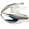 The headlight panel on a motorcycle is a component that surrounds and frames the headlight. It provides a protective barrier for the headlight, shielding it from impacts and environmental elements. Additionally, it plays a role in the motorcycle’s overall styling by giving the front end a finished and cohesive look.