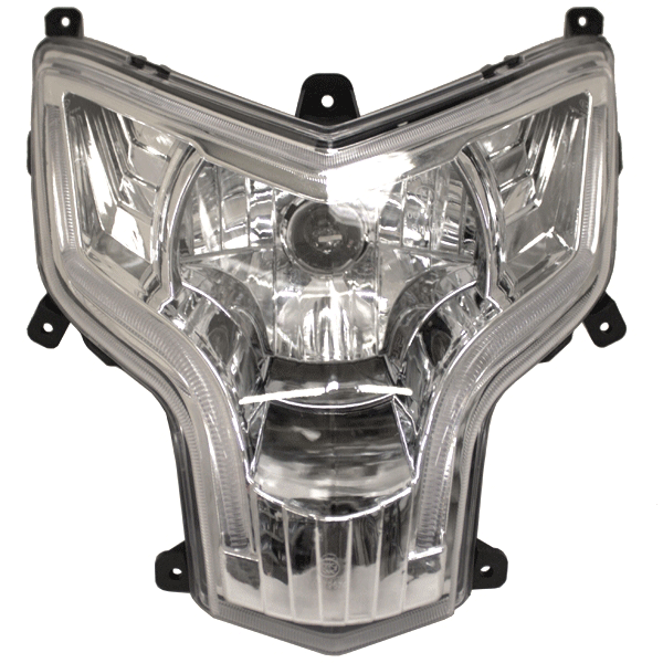 The headlight panel on a motorcycle is a component that surrounds and frames the headlight. It provides a protective barrier for the headlight, shielding it from impacts and environmental elements. Additionally, it plays a role in the motorcycle’s overall styling by giving the front end a finished and cohesive look.