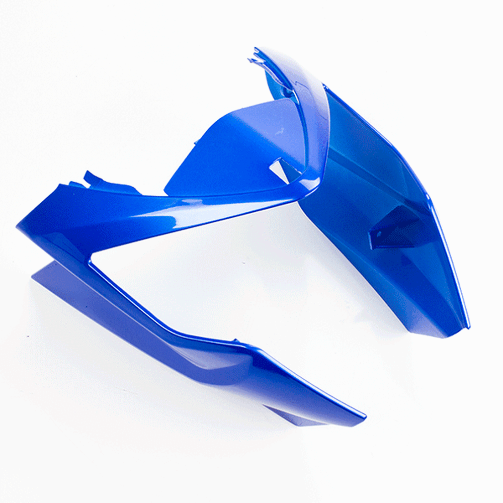 The headlight panel on a motorcycle is a component that surrounds and frames the headlight. It provides a protective barrier for the headlight, shielding it from impacts and environmental elements. Additionally, it plays a role in the motorcycle’s overall styling by giving the front end a finished and cohesive look.