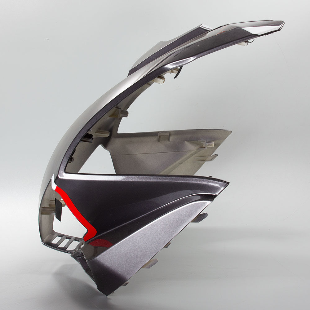 The headlight panel on a motorcycle is a component that surrounds and frames the headlight. It provides a protective barrier for the headlight, shielding it from impacts and environmental elements. Additionally, it plays a role in the motorcycle’s overall styling by giving the front end a finished and cohesive look.