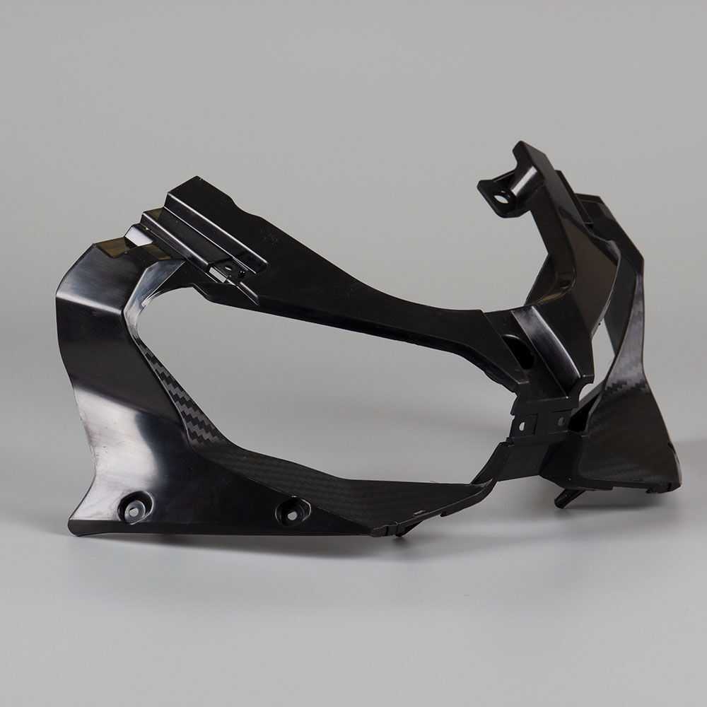 The headlight panel on a motorcycle is a component that surrounds and frames the headlight. It provides a protective barrier for the headlight, shielding it from impacts and environmental elements. Additionally, it plays a role in the motorcycle’s overall styling by giving the front end a finished and cohesive look.