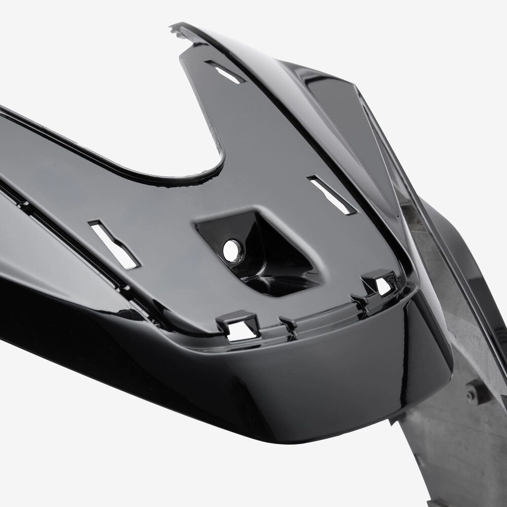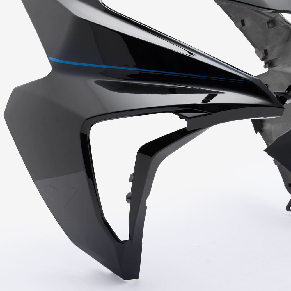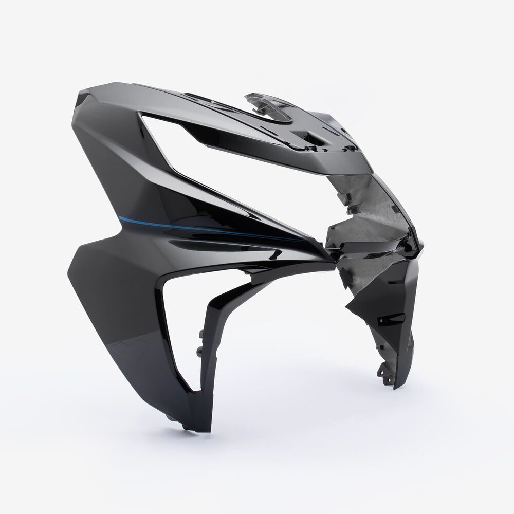 The headlight panel on a motorcycle is a component that surrounds and frames the headlight. It provides a protective barrier for the headlight, shielding it from impacts and environmental elements. Additionally, it plays a role in the motorcycle’s overall styling by giving the front end a finished and cohesive look.