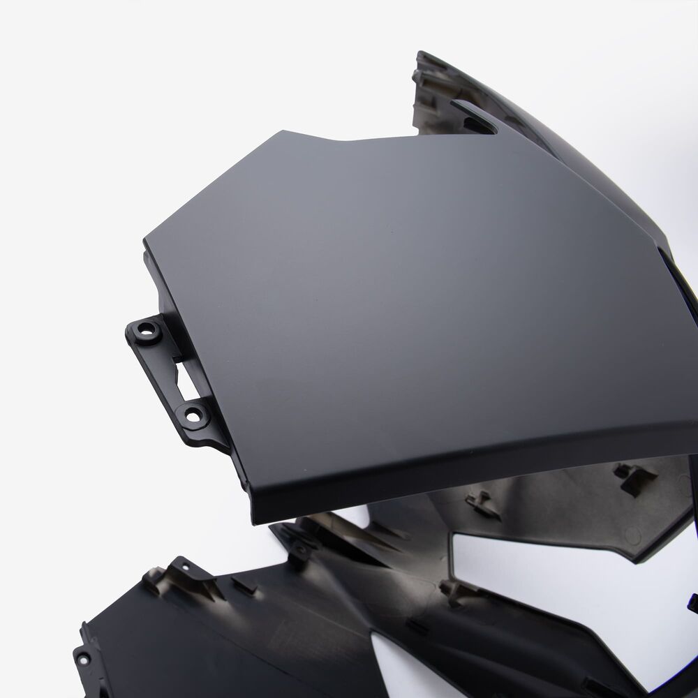 The headlight panel on a motorcycle is a component that surrounds and frames the headlight. It provides a protective barrier for the headlight, shielding it from impacts and environmental elements. Additionally, it plays a role in the motorcycle’s overall styling by giving the front end a finished and cohesive look.