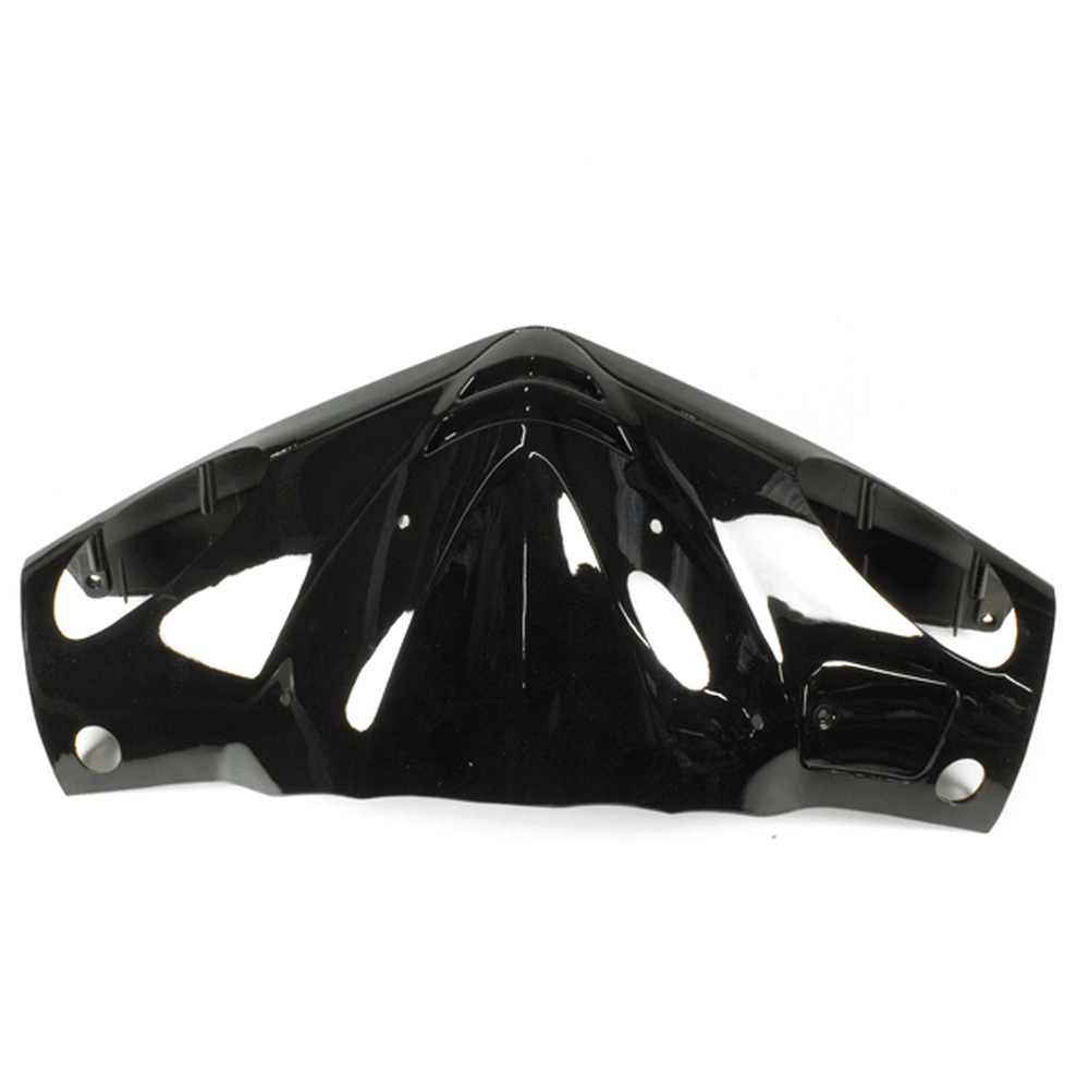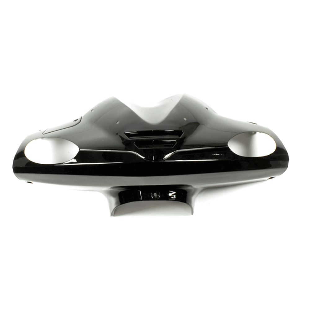 The handlebar fairing on a motorcycle is a protective and aerodynamic component mounted around the handlebars. It serves to shield the rider from wind, debris, and weather conditions, improving comfort during rides. The fairing also enhances the motorcycle's aerodynamic profile, which can contribute to better stability and performance at higher speeds. Additionally, it provides a finished, streamlined look to the front of the bike, complementing its overall design. Made from materials such as plastic or fiberglass, the handlebar fairing is designed to be durable and impact-resistant, ensuring both functionality and aesthetic appeal.