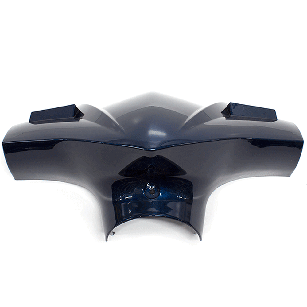 The handlebar fairing on a motorcycle is a protective and aerodynamic component mounted around the handlebars. It serves to shield the rider from wind, debris, and weather conditions, improving comfort during rides. The fairing also enhances the motorcycle's aerodynamic profile, which can contribute to better stability and performance at higher speeds. Additionally, it provides a finished, streamlined look to the front of the bike, complementing its overall design. Made from materials such as plastic or fiberglass, the handlebar fairing is designed to be durable and impact-resistant, ensuring both functionality and aesthetic appeal.