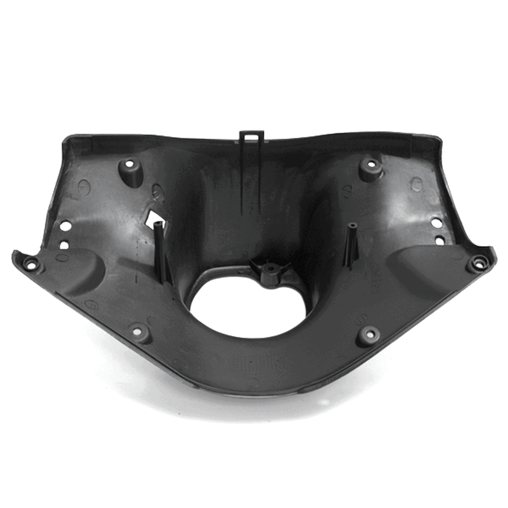 The handlebar fairing on a motorcycle is a protective and aerodynamic component mounted around the handlebars. It serves to shield the rider from wind, debris, and weather conditions, improving comfort during rides. The fairing also enhances the motorcycle's aerodynamic profile, which can contribute to better stability and performance at higher speeds. Additionally, it provides a finished, streamlined look to the front of the bike, complementing its overall design. Made from materials such as plastic or fiberglass, the handlebar fairing is designed to be durable and impact-resistant, ensuring both functionality and aesthetic appeal.