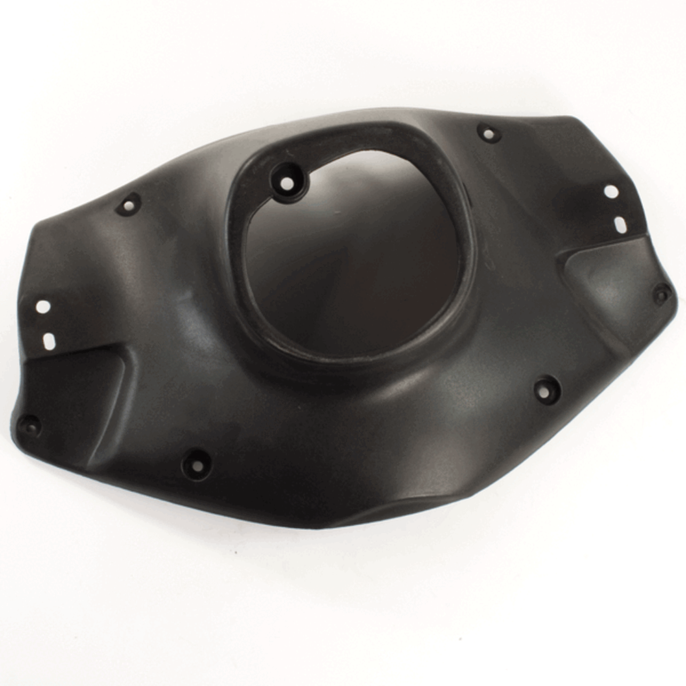 The handlebar fairing on a motorcycle is a protective and aerodynamic component mounted around the handlebars. It serves to shield the rider from wind, debris, and weather conditions, improving comfort during rides. The fairing also enhances the motorcycle's aerodynamic profile, which can contribute to better stability and performance at higher speeds. Additionally, it provides a finished, streamlined look to the front of the bike, complementing its overall design. Made from materials such as plastic or fiberglass, the handlebar fairing is designed to be durable and impact-resistant, ensuring both functionality and aesthetic appeal.