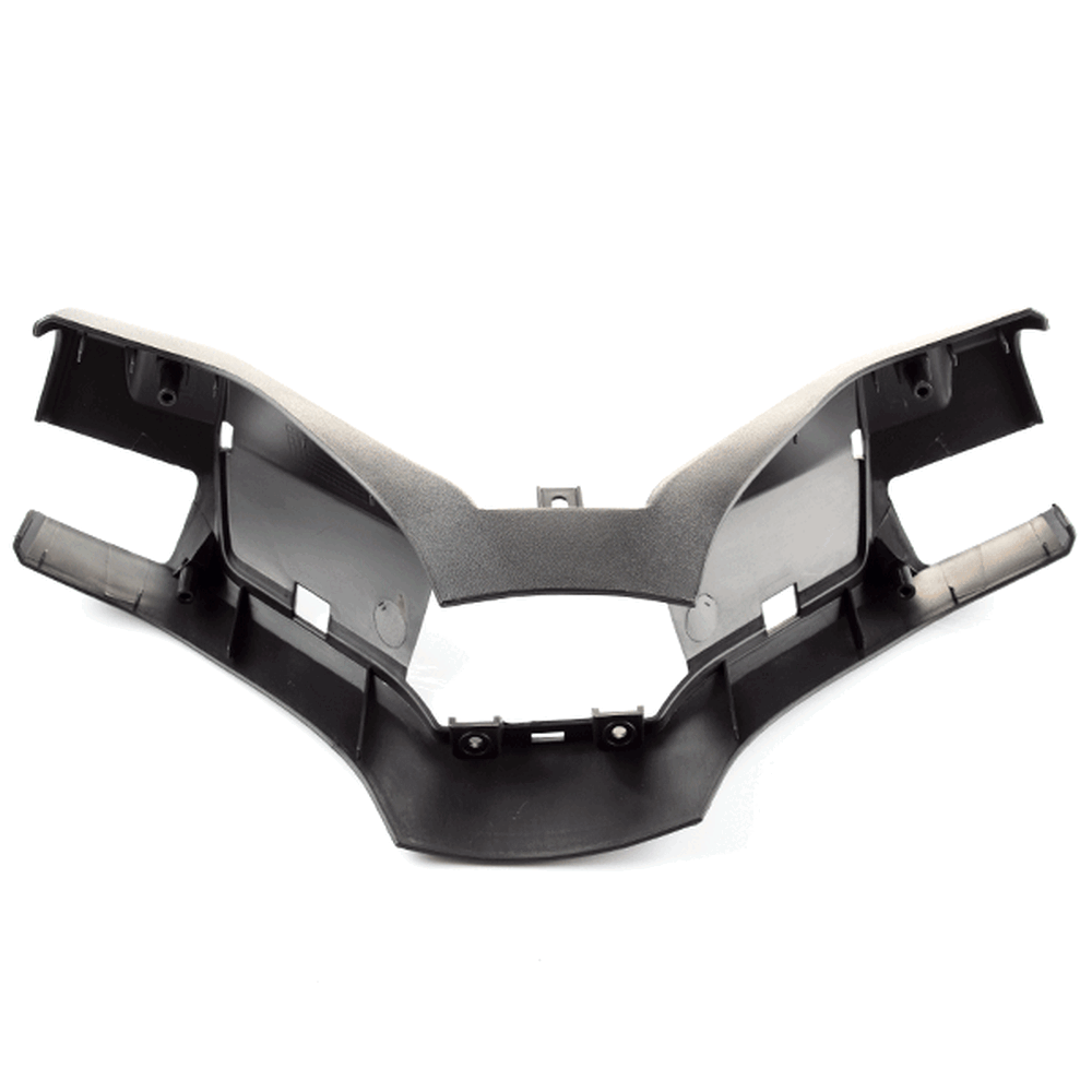 The handlebar fairing on a motorcycle is a protective and aerodynamic component mounted around the handlebars. It serves to shield the rider from wind, debris, and weather conditions, improving comfort during rides. The fairing also enhances the motorcycle's aerodynamic profile, which can contribute to better stability and performance at higher speeds. Additionally, it provides a finished, streamlined look to the front of the bike, complementing its overall design. Made from materials such as plastic or fiberglass, the handlebar fairing is designed to be durable and impact-resistant, ensuring both functionality and aesthetic appeal.
