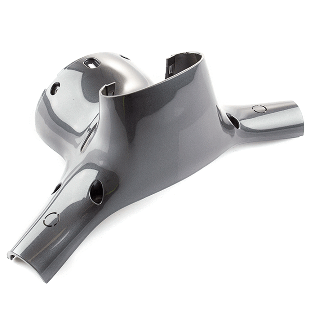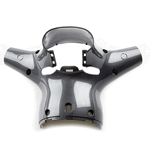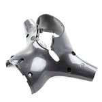 The handlebar fairing on a motorcycle is a protective and aerodynamic component mounted around the handlebars. It serves to shield the rider from wind, debris, and weather conditions, improving comfort during rides. The fairing also enhances the motorcycle's aerodynamic profile, which can contribute to better stability and performance at higher speeds. Additionally, it provides a finished, streamlined look to the front of the bike, complementing its overall design. Made from materials such as plastic or fiberglass, the handlebar fairing is designed to be durable and impact-resistant, ensuring both functionality and aesthetic appeal.