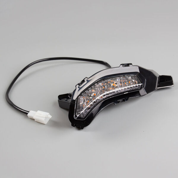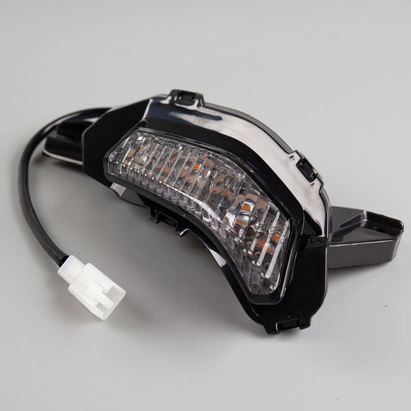 The handlebar fairing on a motorcycle is a protective and aerodynamic component mounted around the handlebars. It serves to shield the rider from wind, debris, and weather conditions, improving comfort during rides. The fairing also enhances the motorcycle's aerodynamic profile, which can contribute to better stability and performance at higher speeds. Additionally, it provides a finished, streamlined look to the front of the bike, complementing its overall design. Made from materials such as plastic or fiberglass, the handlebar fairing is designed to be durable and impact-resistant, ensuring both functionality and aesthetic appeal.