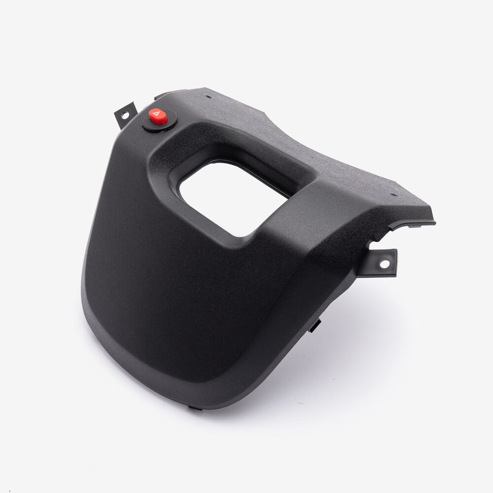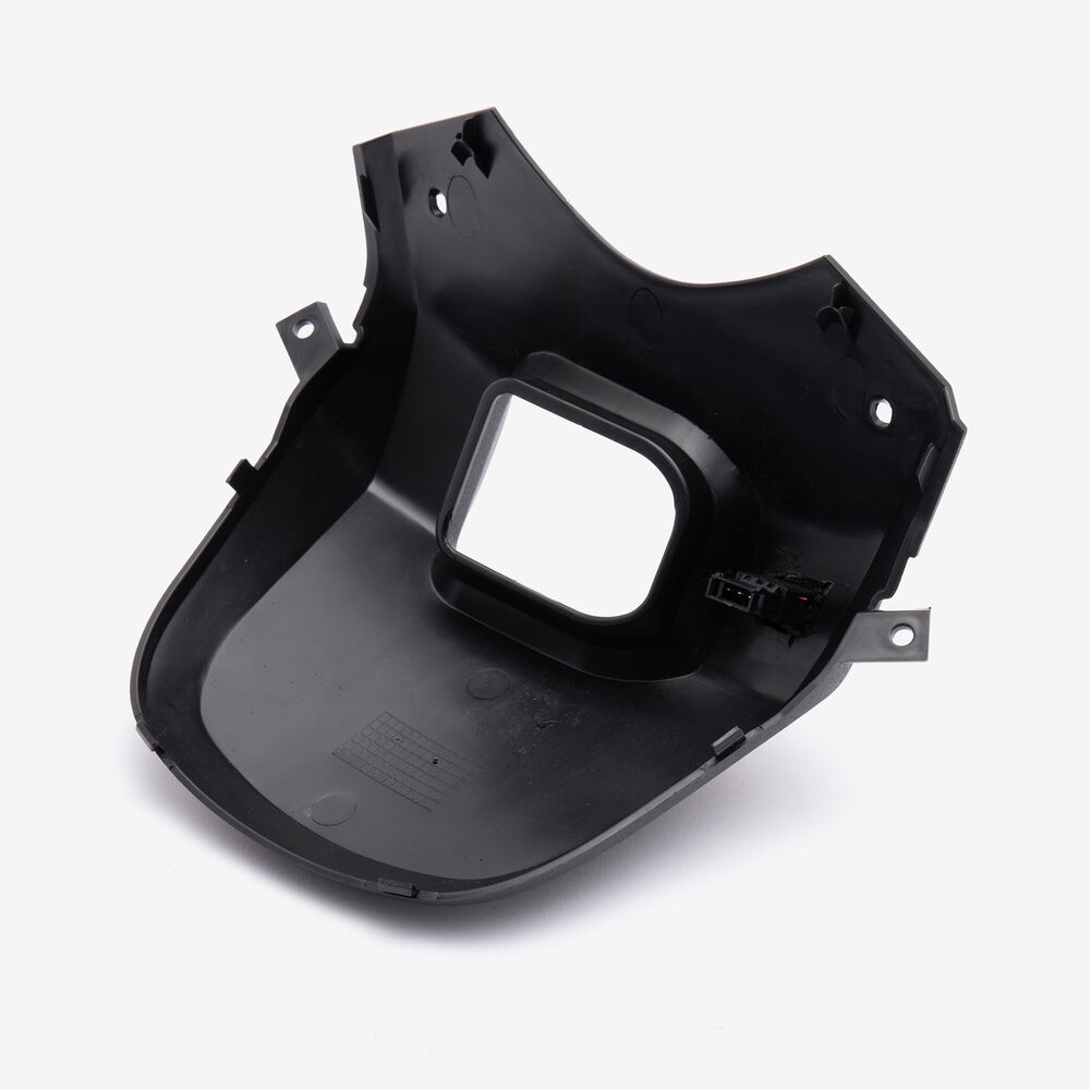 The ignition lock cover on a motorcycle is a protective component that shields the ignition lock mechanism. It guards the lock from dirt, moisture, and physical damage, ensuring smooth operation and extending its lifespan. Additionally, it helps prevent tampering or unauthorized access, contributing to the motorcycle's overall security. The cover also provides a finished, streamlined look to the area around the ignition lock, enhancing the motorcycle's appearance. Typically made from durable materials like plastic or metal, it is designed to fit securely and maintain both the functionality and aesthetics of the motorcycle.