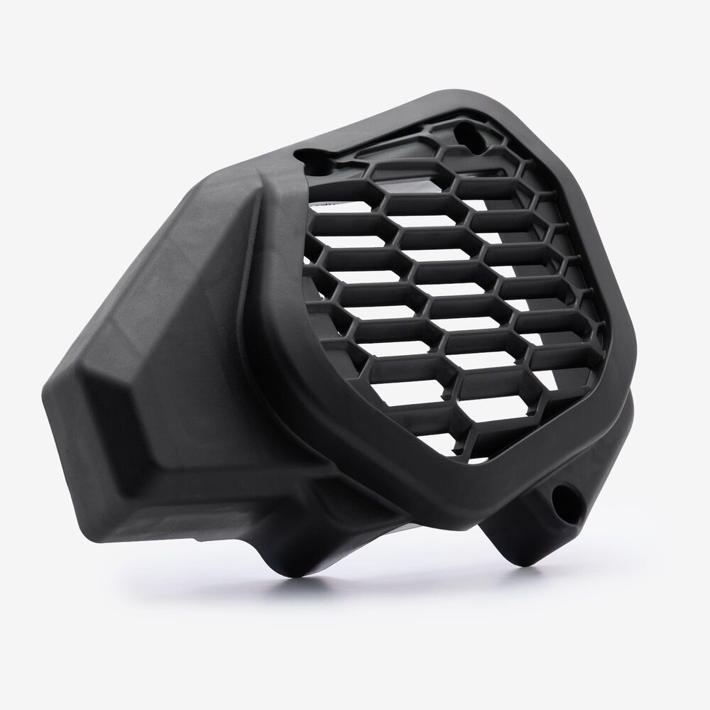 A radiator surround panel on a motorcycle is a protective cover that surrounds the radiator, helping to shield it from debris, dirt, and damage. It also plays an aesthetic role, contributing to the overall design of the bike. Made from materials like plastic or fiberglass, the panel helps direct airflow to the radiator for efficient cooling while also improving the bike’s appearance and protecting vulnerable components.