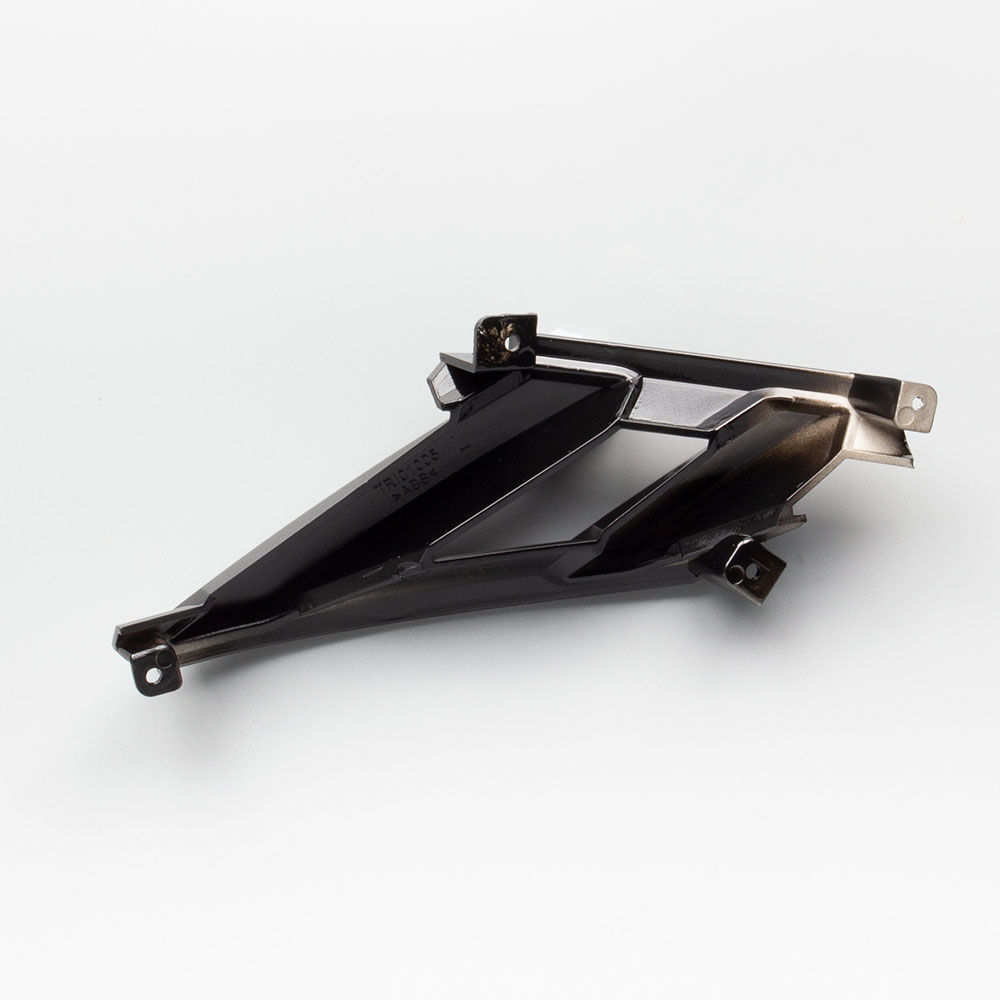 The left side panel on a motorcycle is a bodywork component located on the left side of the bike. Typically made from materials like plastic, fiberglass, or carbon fiber, the left side panel is designed to be durable and resistant to impact, heat, and environmental