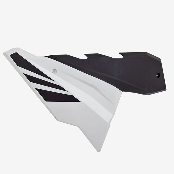 The left side panel on a motorcycle is a bodywork component located on the left side of the bike. Typically made from materials like plastic, fiberglass, or carbon fiber, the left side panel is designed to be durable and resistant to impact, heat, and environmental